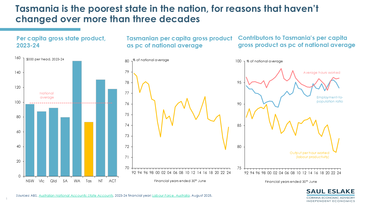 Saul Eslake’s presentation to a Workshop for staff at the Tasmanian School of Business and Economics at the University of Tasmania on 28th October 2025.