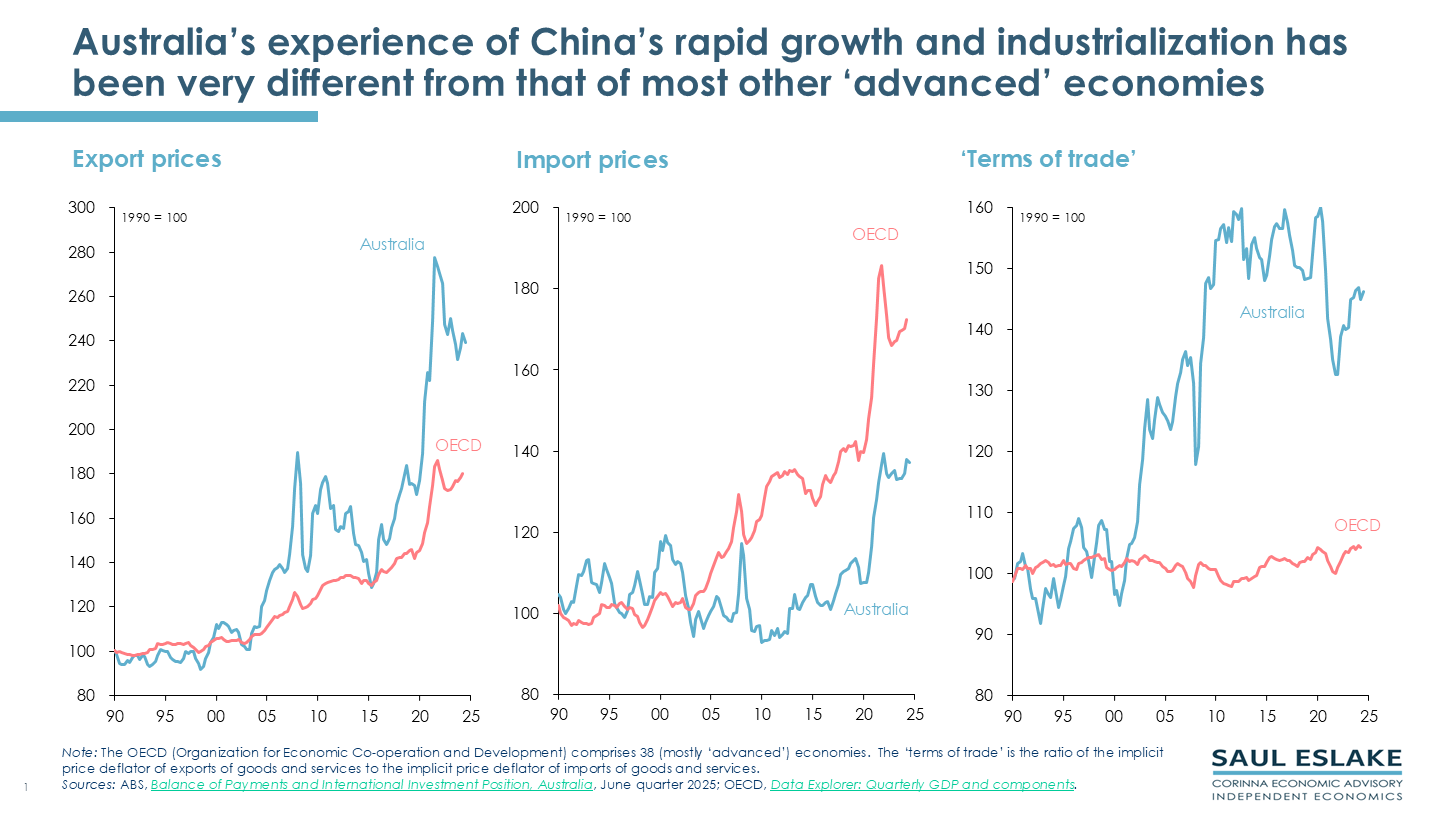 - the very different implications for Australia, compared with other ‘advanced’ economies, of the rapid growth and industrialization of China over the past three decades;